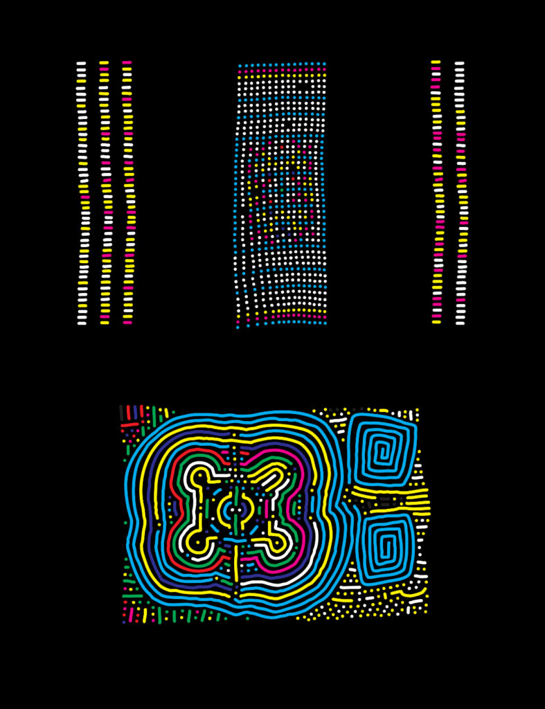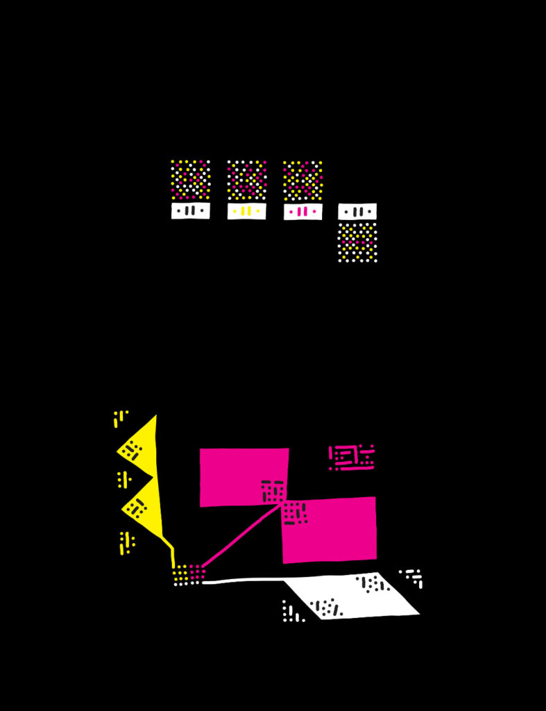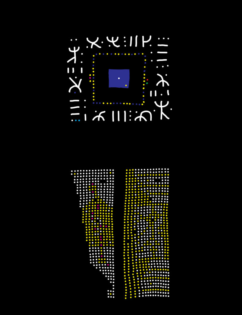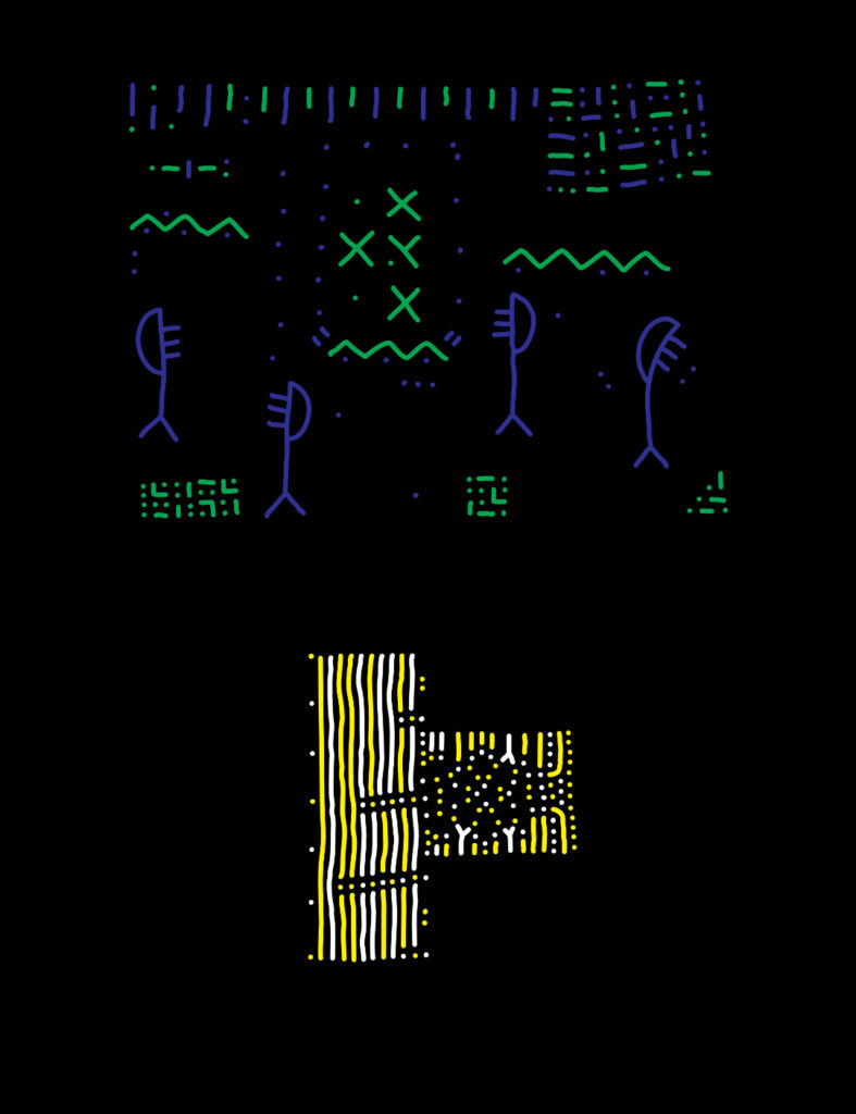 kommunikationsmaschine / 2 tafeln wie könnte kommunikation mit der entwicklung des individuums zusammenhängen aus kleinen einfachen komponenten aufgebaut in wiederholungen verfeinert und durch kombinationen vervielfältigt prägt die kommunikation das individuum selbst
